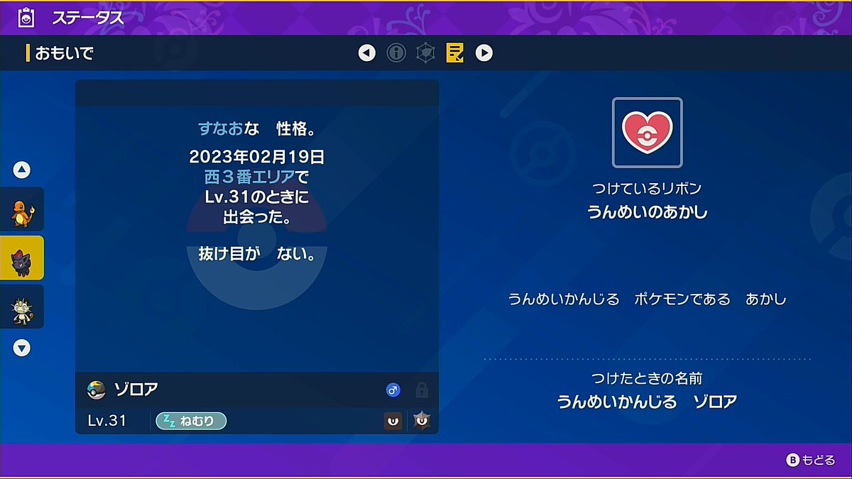 色違いを5匹配布します。ゾロアおねむな二つ名付き