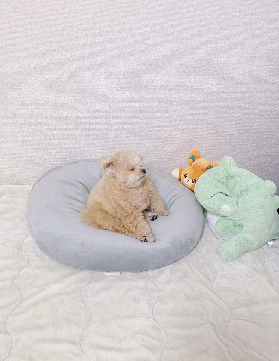 クッションの上で座りながら寝てた🧸!笑