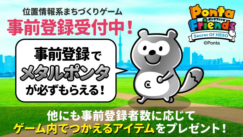 【キャンペーンスタート!】 「ポンタフレンズ」事前登録キャンペーン開始! いなくなってしまったポンタウンの住民を一緒に探そう! 事前登録をしてくれた方にはゲーム内でつかえるアイテムをプレゼント♪ ▼事前登録の方法など、詳細についてはこちら! friends.ponta.jp #ポンタフレンズ
