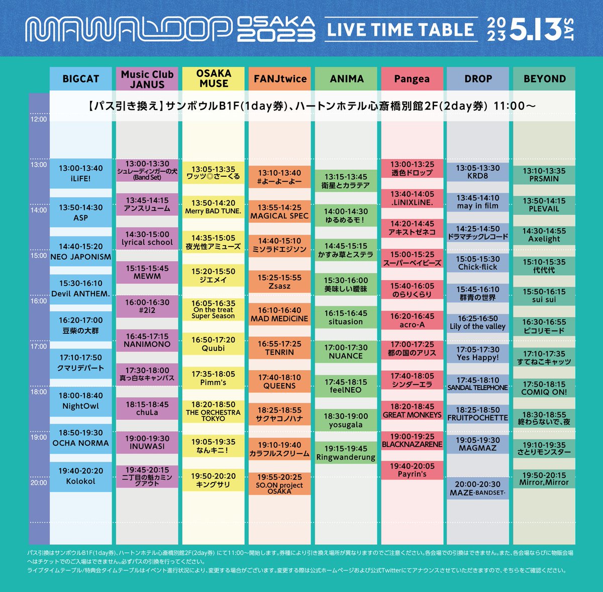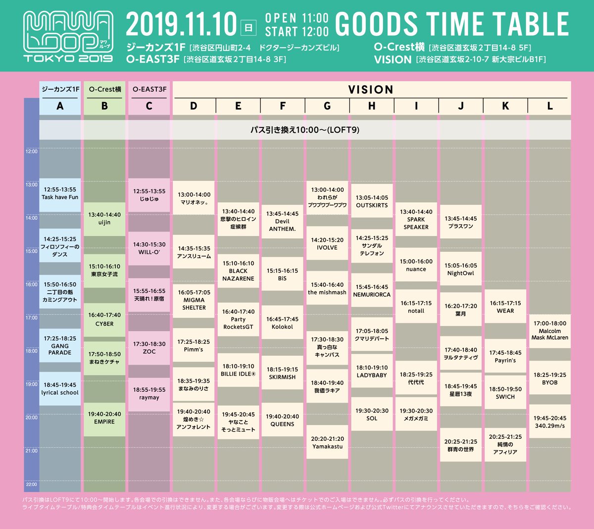 また、ライブタイムテーブルに一部変更がございます。