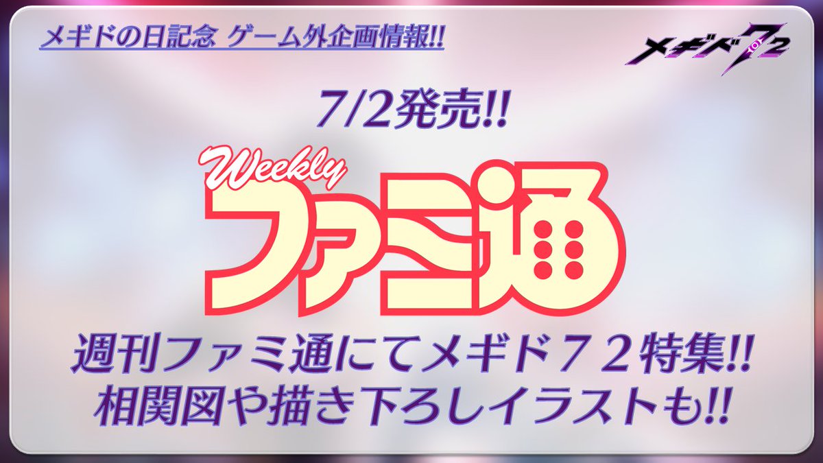 7/2メギドの日に発売される週刊ファミ通では、開発秘話や相関図、描き下ろしイラストなど50ページにわたるメギド特集が行われます📖✨お楽しみに♪