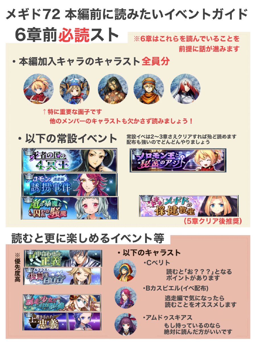 メギド72メインストーリー6章以降を進めるにあたって事前に読んで欲しいイベント・キャラストを纏めました!