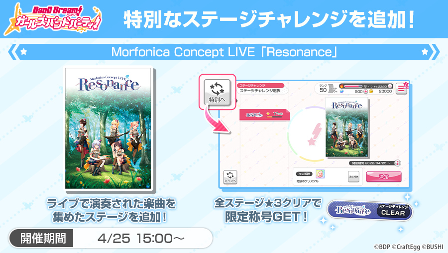 明日15時より、ステージチャレンジ「特別」に、本ライブで演奏された楽曲を集めた、特別なステージを追加🎶