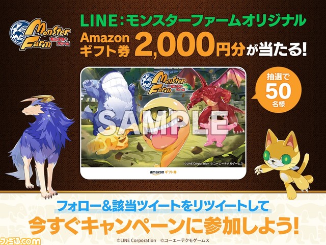 「LINE:モンスターファーム」オリジナルデザインのAmazonギフト券2000円分を抽選で50名様にプレゼント!