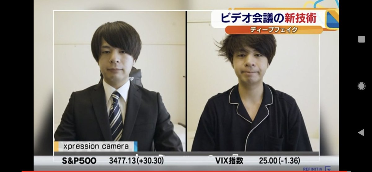 ディープフェイクアプリにスーツ姿を記録しておけば、オンライン会議をパジャマ姿で行うことができるようになる。 #モーサテ