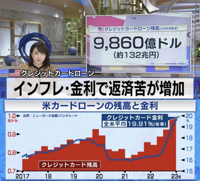 米クレカ残9860億ドル(132兆円)