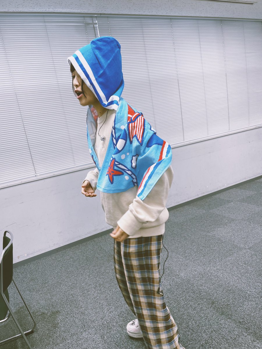 久しぶりのフードタオル!!!フードを被るとタンクトップくんの帽子とおそろいになります!!!すご!!!すごデザイン!!!!すごデザイン賞あげます!!!