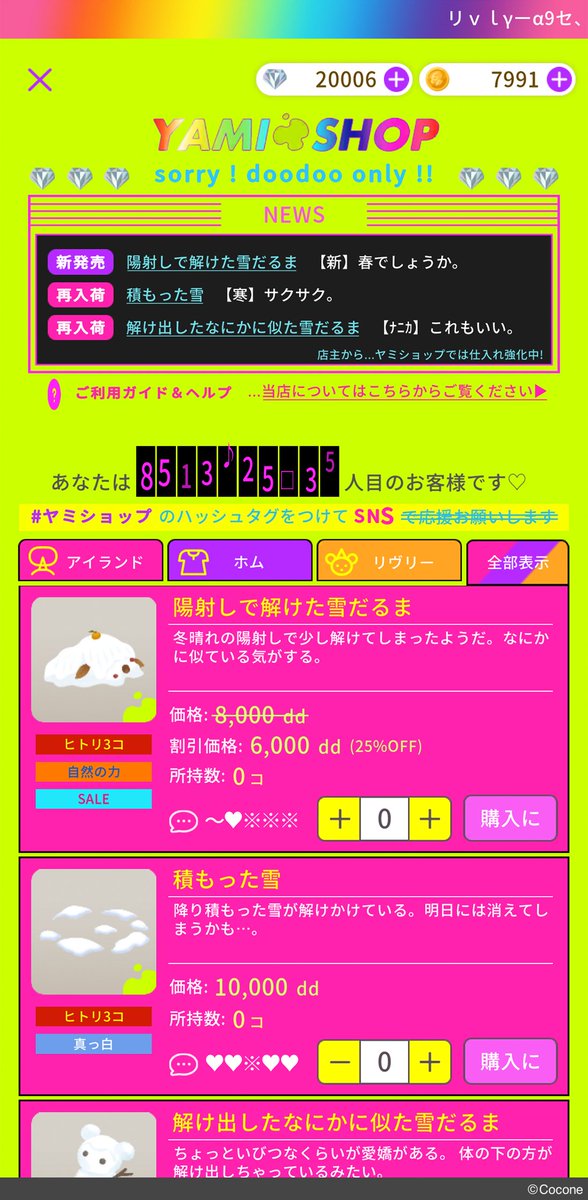 謎の黄緑色のシミに触れると移動してしまう「ヤミショップ」に、今週も新入荷・再入荷がありました!