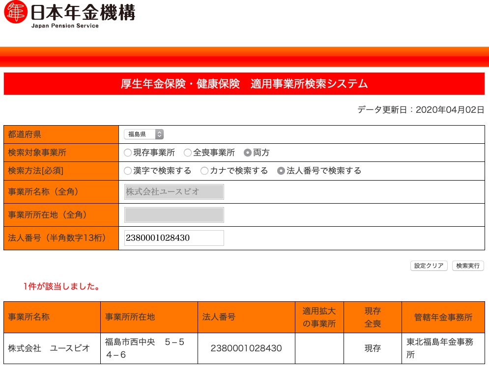 ユースビオ、厚生年金・健保には加入済み。これは法人は強制加入なので登記してれば当たり前だけれど、労働保険については未加入。つまり2017年設立から雇用がないということか。
