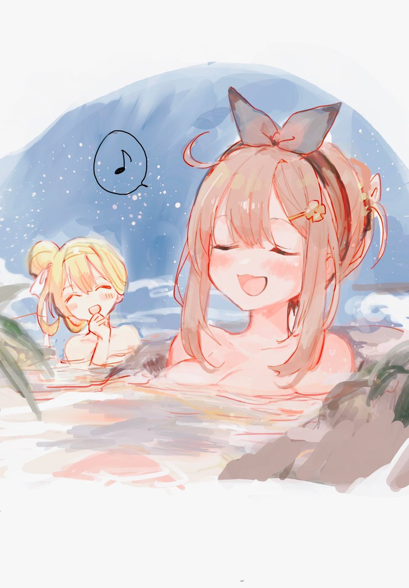 🔶ぷにも一緒♪湯けむり温泉姿