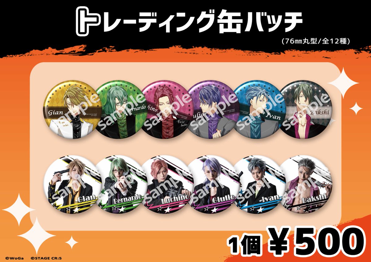 トレーディング缶バッジ 76mm 各500円(税込)