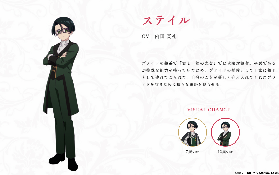 『君と一筋の光を』ではラスボスとして君臨していたが、前世の記憶を思い出し将来自分が引き起こすであろう悲劇を改変するべく努力し全力を尽くす覚悟をする。