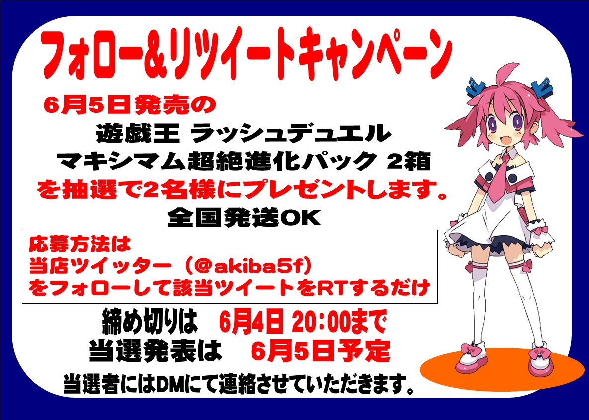 開催を記念して6月5日発売の《マキシマム超絶進化パック 2箱》を抽選で2名様にプレゼント