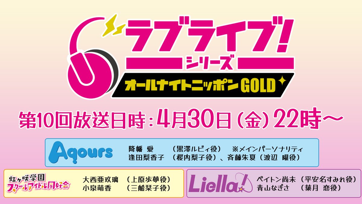 「ラブライブ!シリーズのオールナイトニッポンGOLD」第10回放送の詳細が決定🎊
