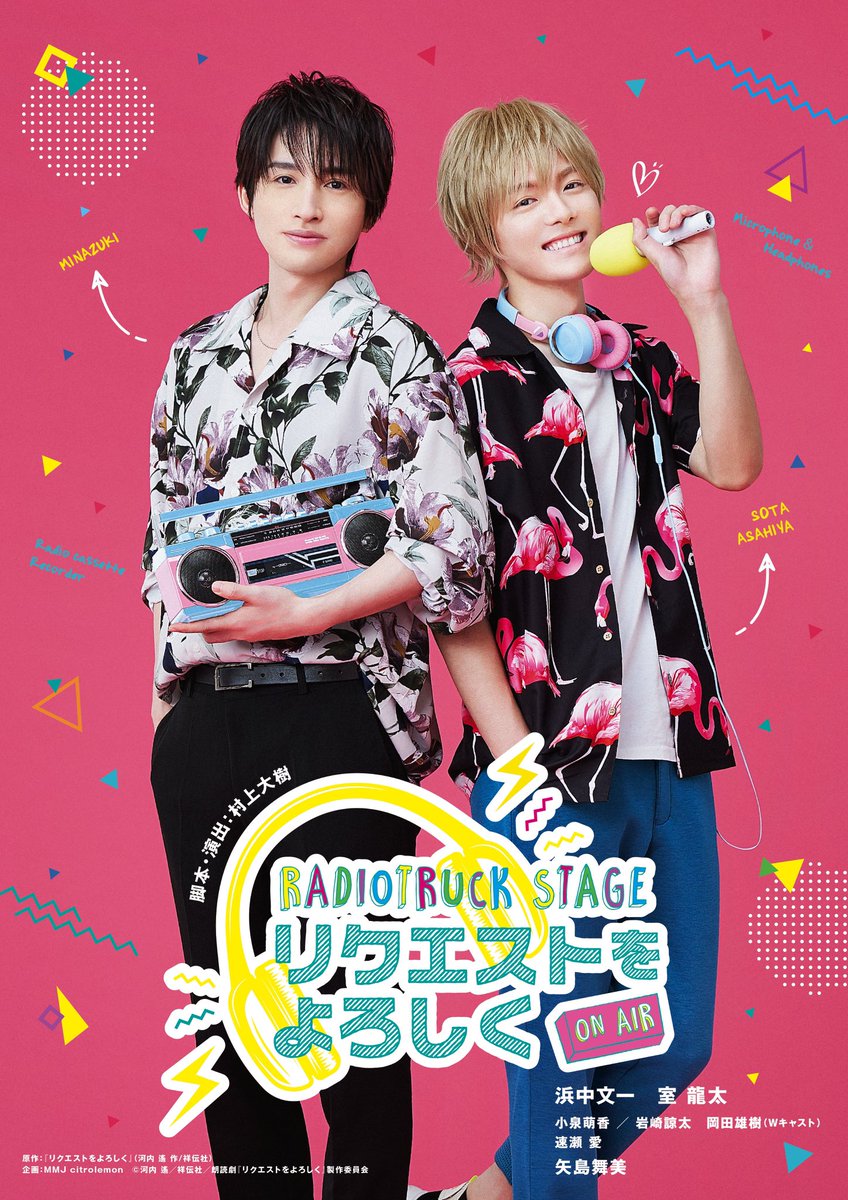 朗読劇 #リクエストをよろしく W主演の #浜中文一 さん #室龍太さん の 役に扮したビジュアル‼️ Check it UP😊 #小泉萌香 #岡田雄樹 #岩崎諒太 #速瀬愛 #矢島舞美 の出演も公開されました。 #朗読劇 #リクエストをよろしく #RadiotruckSTAGE #リクよろ などをつけてツイートをお願いします💫