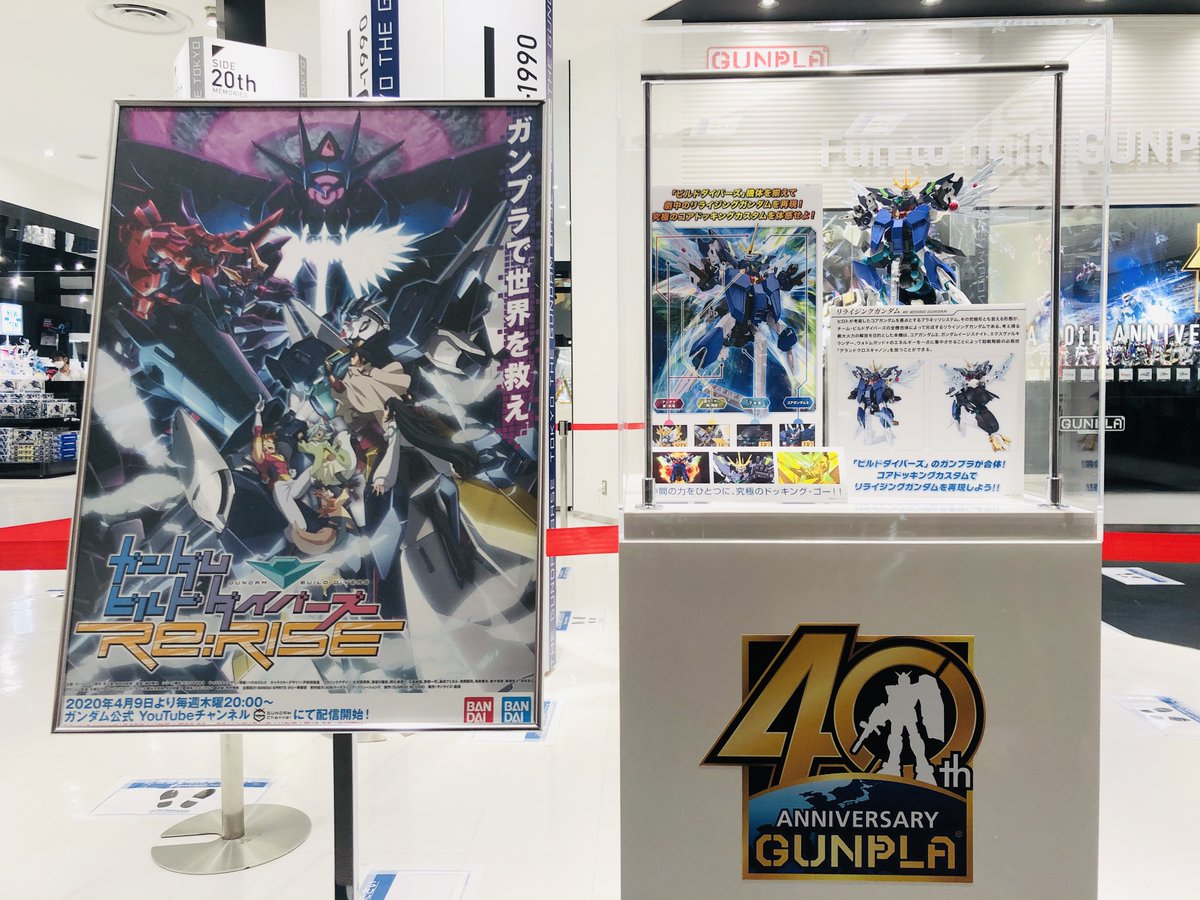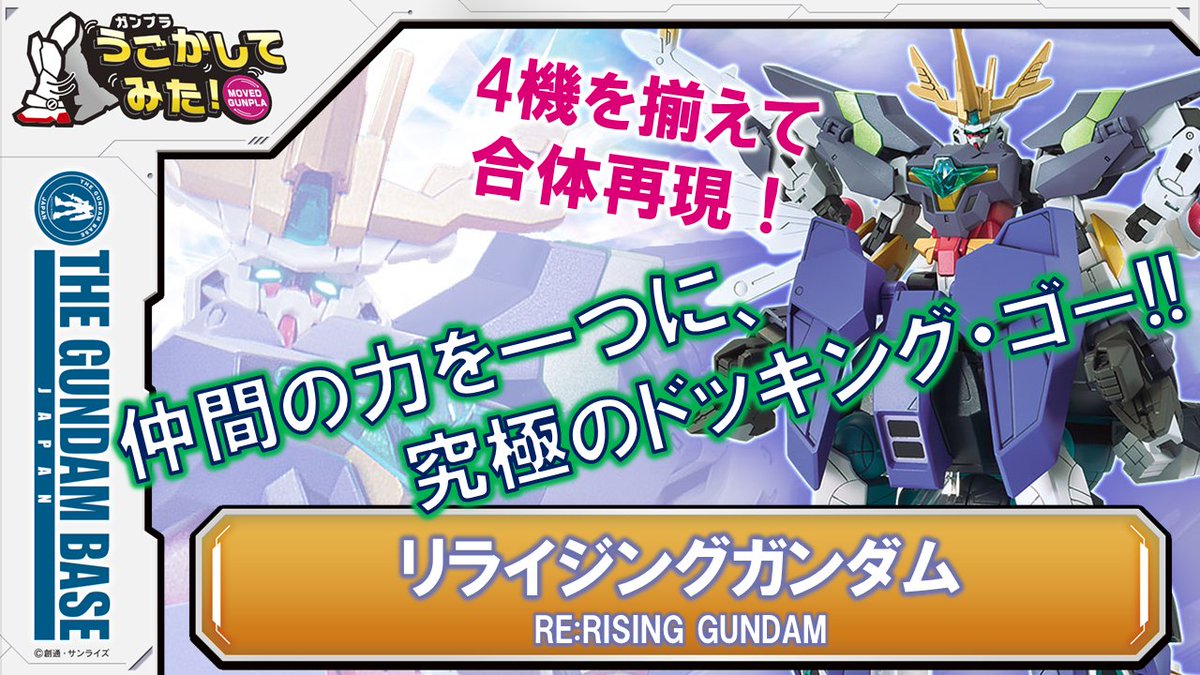 ヒロト達“ビルドダイバーズ”のガンプラ4体を合体して劇中の再現をした『リライジングガンダム』をガンダムベース東京で展示を開始!