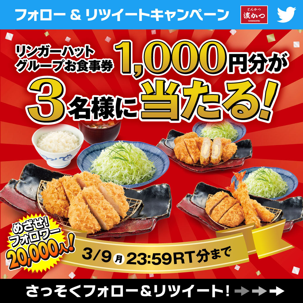 #濵かつ で利用できる #リンガーハット グループお食事券1,000円分が3名様に当たる✨