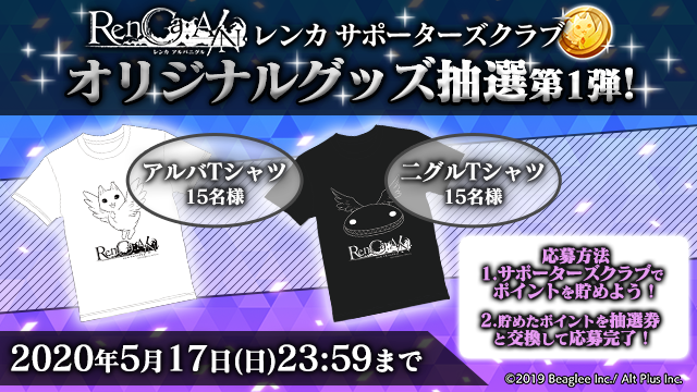 第1弾はアルバとニグルのTシャツを抽選でプレゼント!