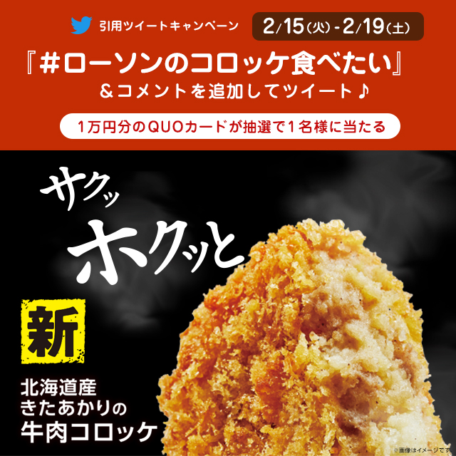\ラストチャンス/ 新発売のコロッケ無料! 1)このアカウントをフォロー 2)下のハッシュタグボタンを押し、#ローソンのコロッケ食べたい をつけて投稿 3)抽選で1万名様に無料券!結果は自動でお知らせ #ローソン #コロッケメンチのおいしいお店 bit.ly/3AyBgWt