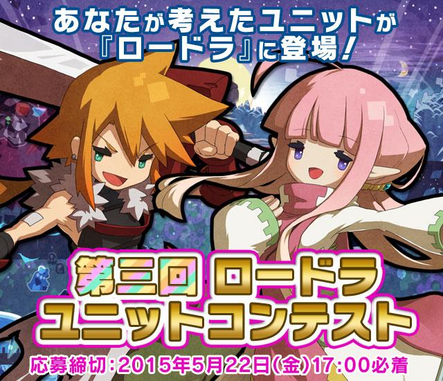 【告知】「第三回ロードラユニットコンテスト」が今日から開催! キミの考えたユニットが「ロードラ」に!? 応募締切は【2015年5月22日(金)17:00必着】 詳細はコチラ! smartphone.acquire.co.jp/rtd/special/co… #ロードラ
