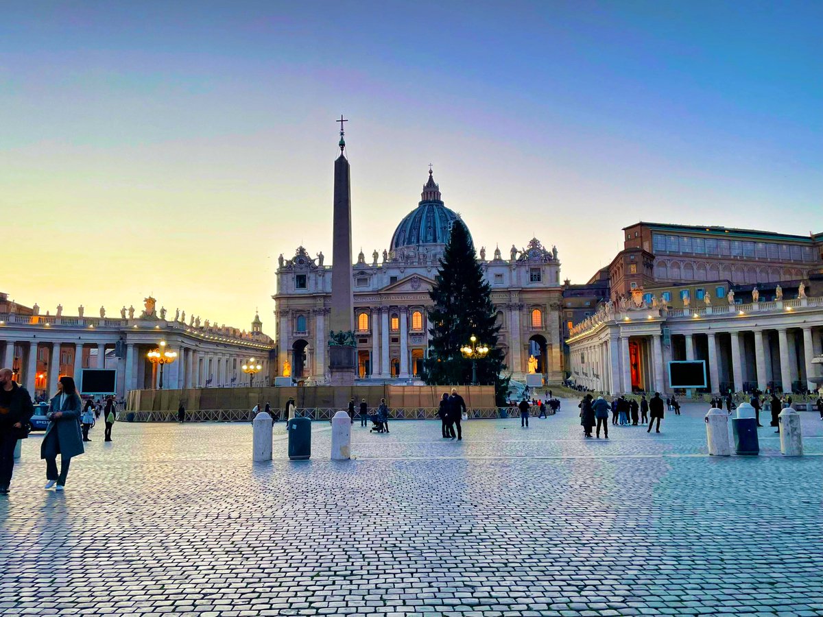 夕暮れのバチカン市国、サン・ピエトロ大聖堂の前からこんにちは🤗