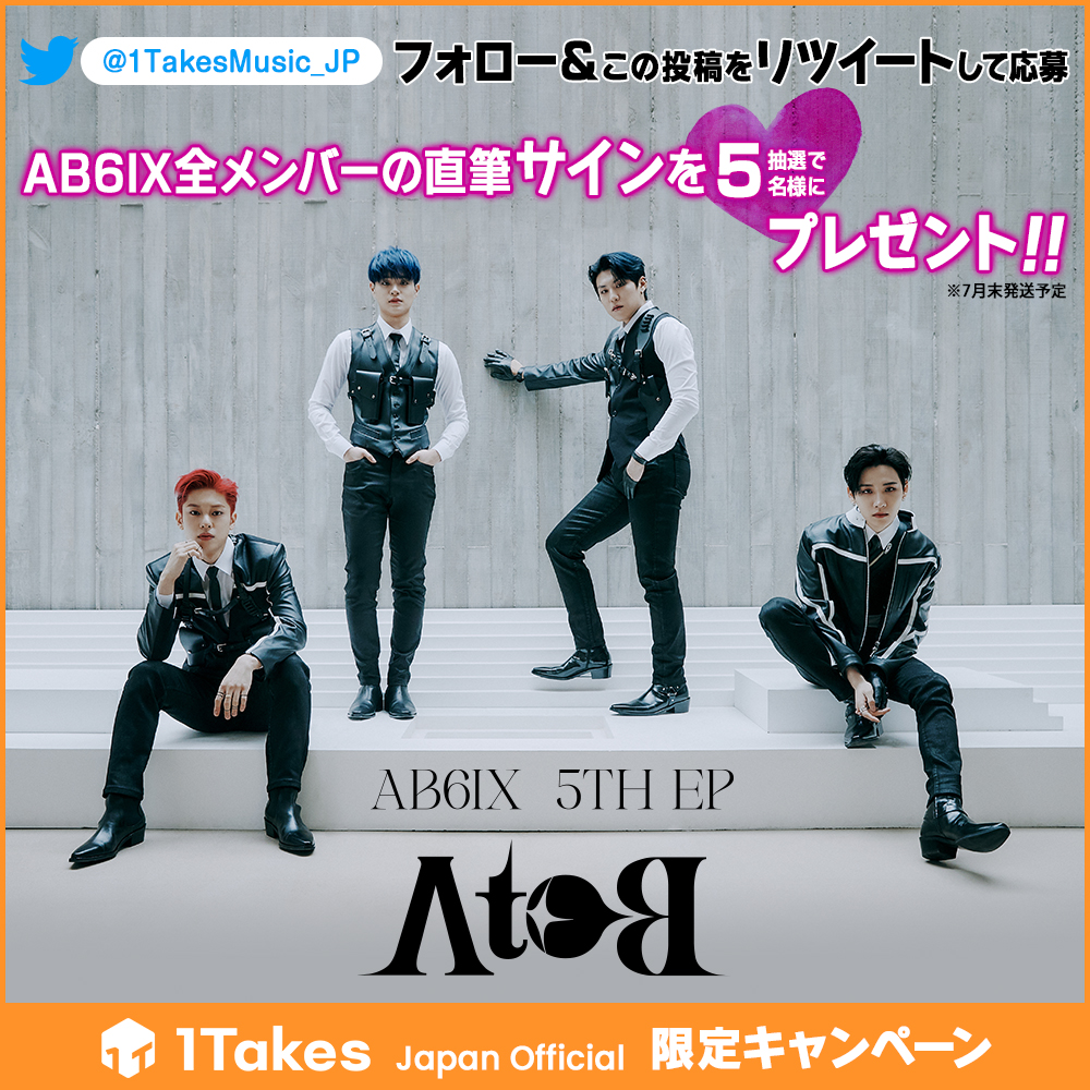 #1takesJAPAN #AB6IX  オンラインサイン会 記念 🥳 メンバー全員のサインをプレゼント🎁 @1TakesMusic_JP をフォロー&この投稿をリツイートしてメンバー全員のサインをもらっちゃお✍💖 #AB6IX  #ABNEW #1Takes #ワンテ #1TakesJAPAN プレゼント企画 まだまだ続きます🎊 お楽しみに!