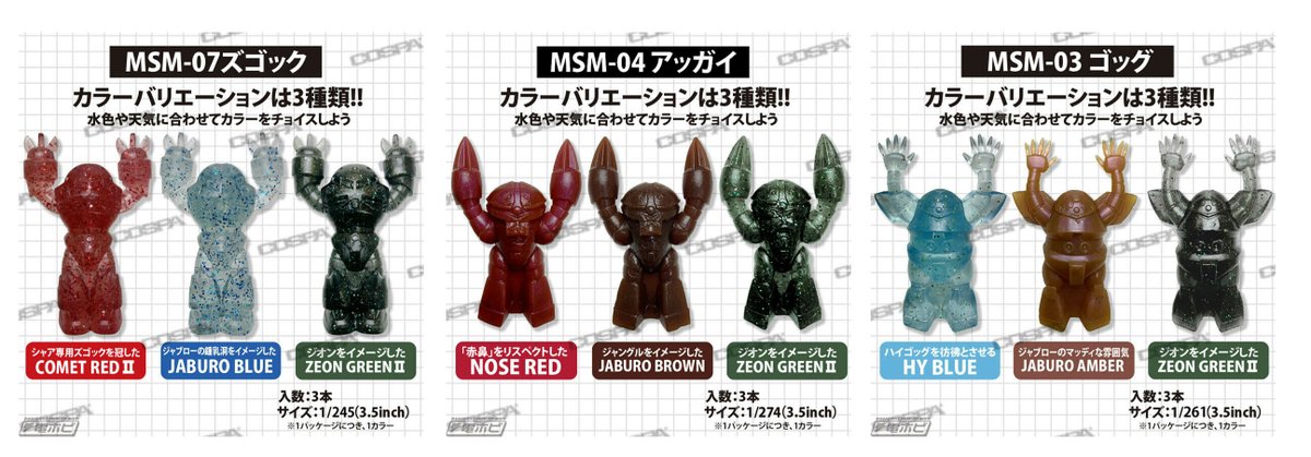 『#ガンダム』水陸両用モビルスーツワームシリーズに新作登場!各機体の両腕が水中でさまざまなフィッシュイーターたちのバイトを誘発!公式設定に基づいて機体のディテールをワームに落とし込んだアイテム!