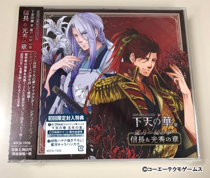 12月26日(水)発売のCD「下天の華 壱 蜜月の秘め事 信長&光秀の章」のサンプルが届きました💿
