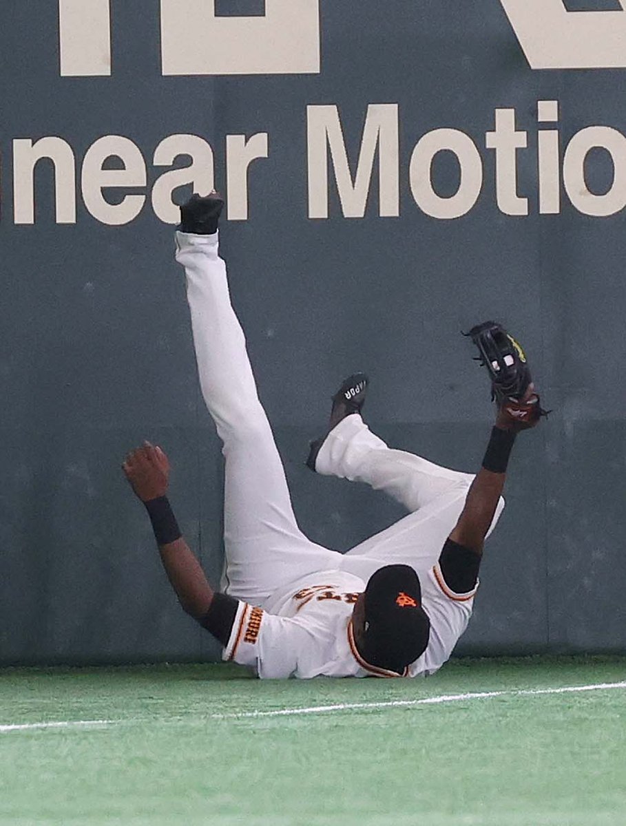 #シューメーカー 投手が二死二、三塁のピンチを背負うが、秋山選手の打球をレフトの #ポランコ 選手がフェンスに激突しながら好捕‼チームを救うビッグプレーが出た👏