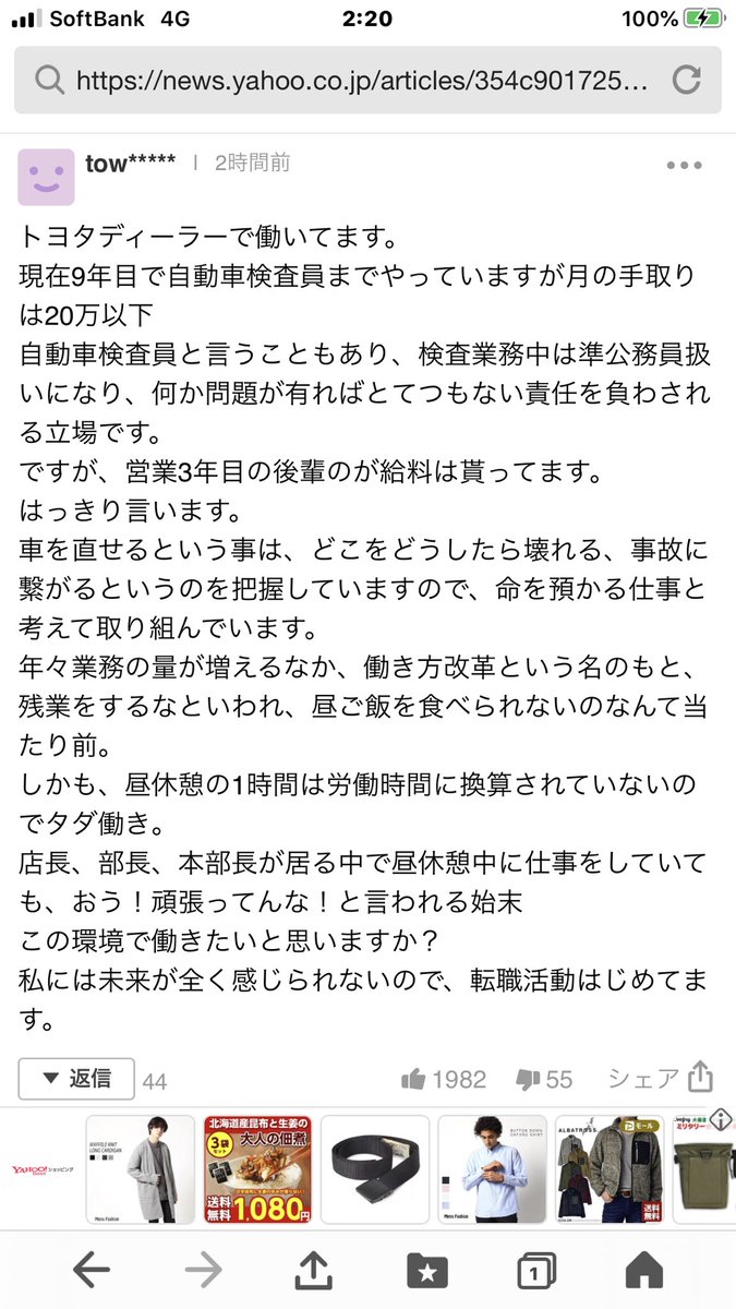 この記事とこのコメント見てコメントした人が本当なら愕然とした… #トヨタ不正 #不正車検 トヨタ不正、作業現場に過剰負荷 news.yahoo.co.jp/articles/354c9…