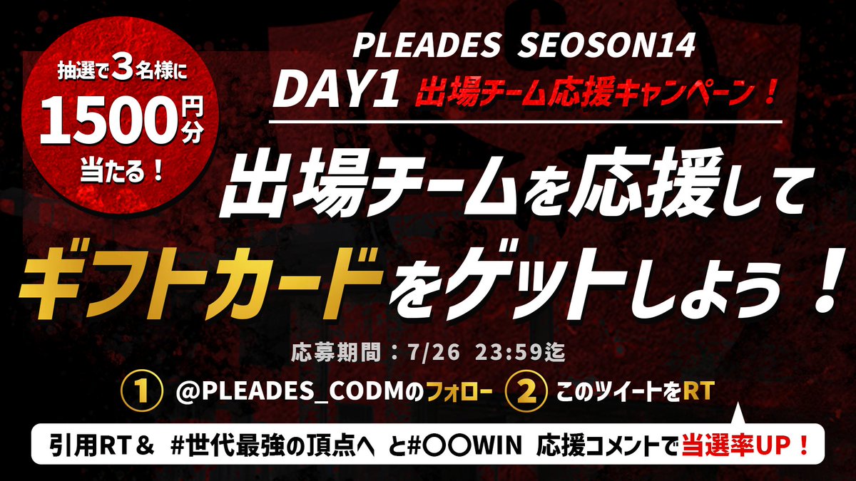 【PLEADES SEASON14 チーム応援プレゼントキャンペーン!】