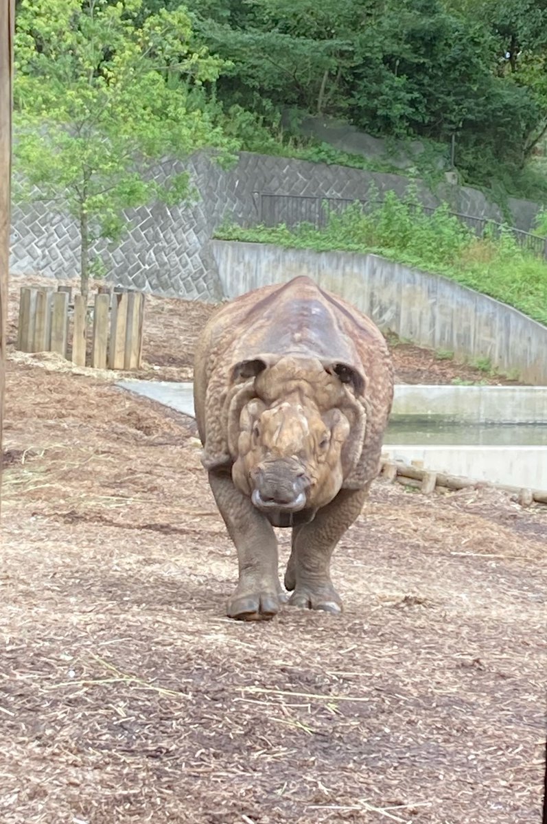 まずは上野動物園の #ヒガシクロサイ の今日の様子です。