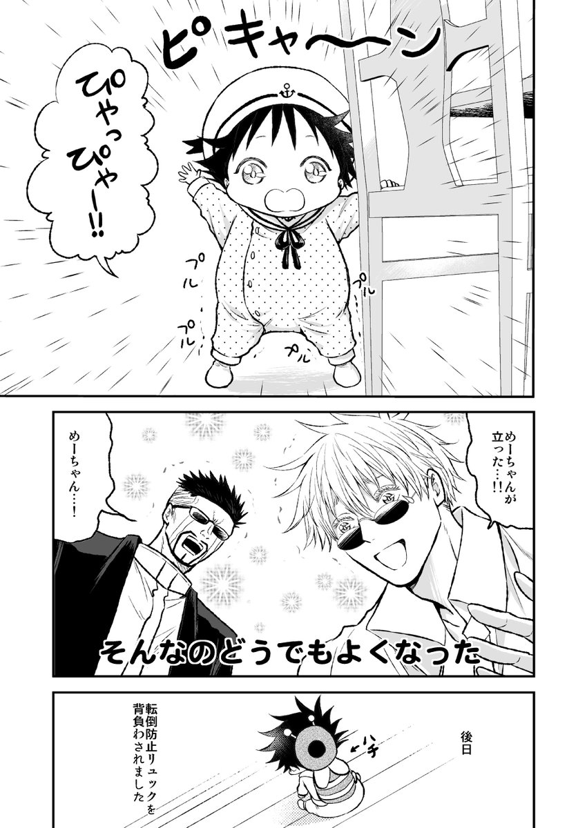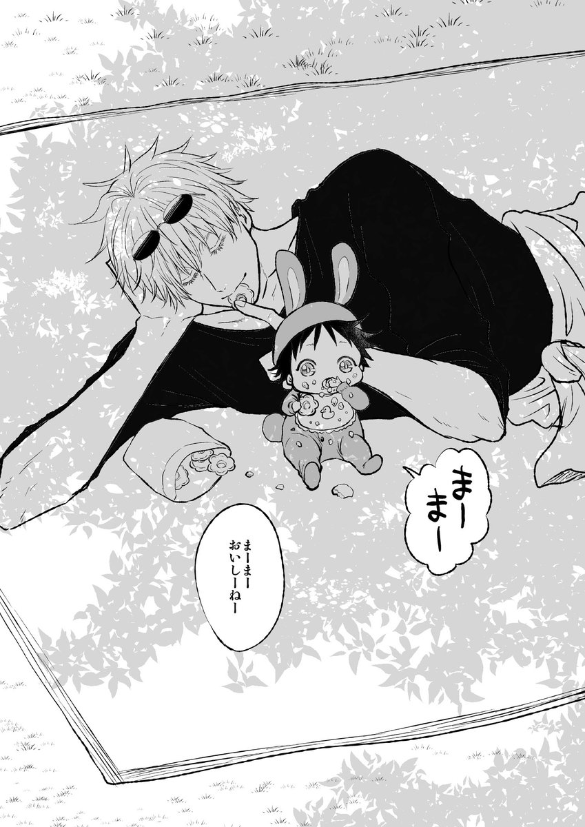 明日16歳五と3歳めぐ漫画をアップ予定ですが、お知らせを兼ねてPixivの方へアップします。かきおろし漫画と先々週のせた米ざんまいを収録します。いつものTwitterアップ時間、明日の日曜19時頃を予定しています。画像はかきおろしの一幕。#五伏