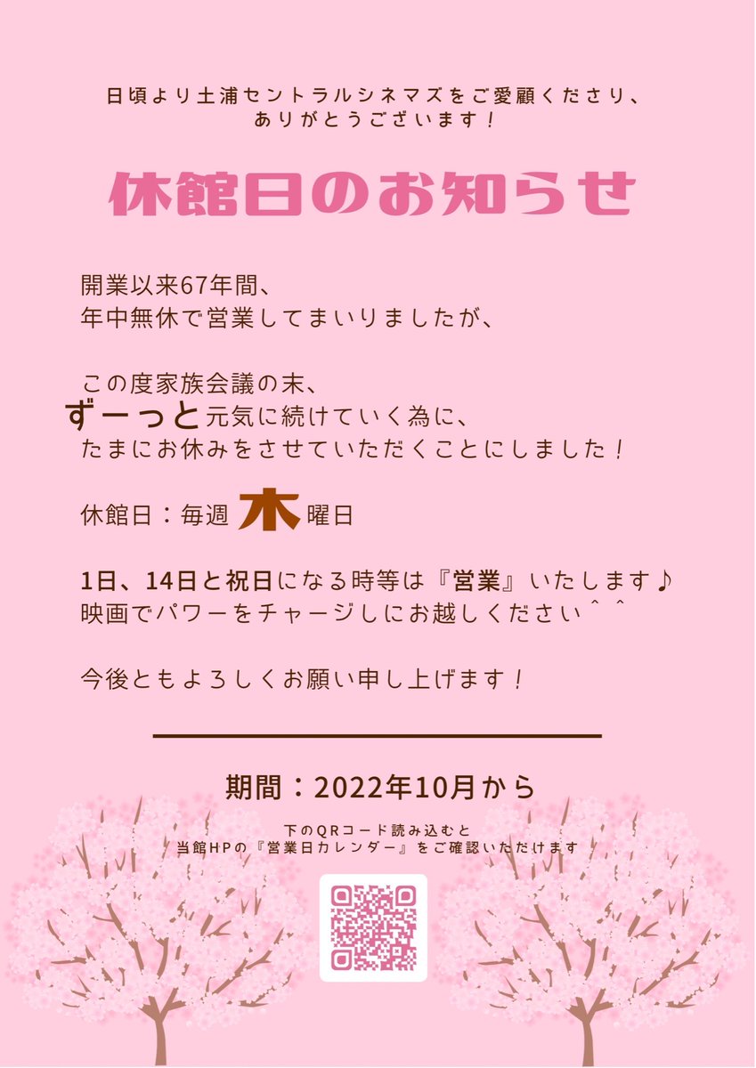 10月より予定しております休館日は