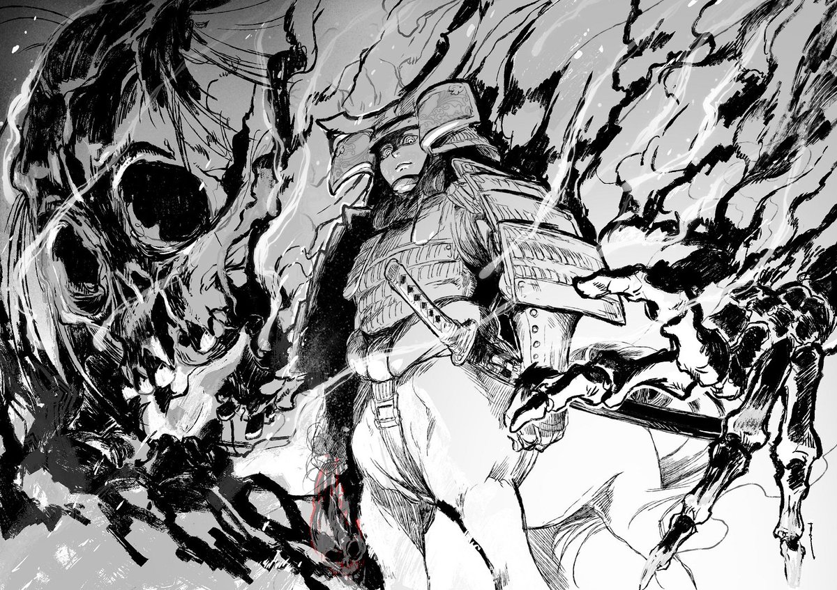 【イラスト】松風。墨佳さんコメント「偉大な何かになろうとか、凄い事成し遂げようとか、微塵も思ってない人物がその時代の救世主になっちゃったっていうのは目茶目茶に可哀想な事だと思ってまひ。」#人馬