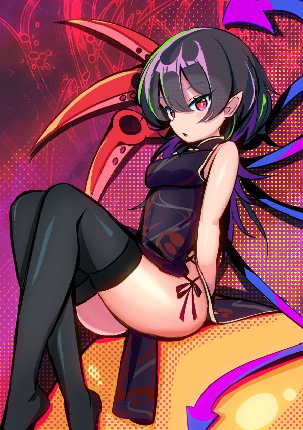 skebでご依頼頂いた竜人ちゃん制服verでした!オリジナルではしゃがみいちりちゃん。