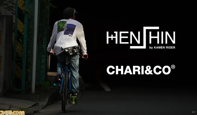 『仮面ライダー』作品をフィーチャーしたファッションブランド“HENSHIN by KAMEN RIDER”と自転車アパレルブランド“CHARI&CO”のコラボTシャツと帽子も受注開始。共同制作ムービーも公開