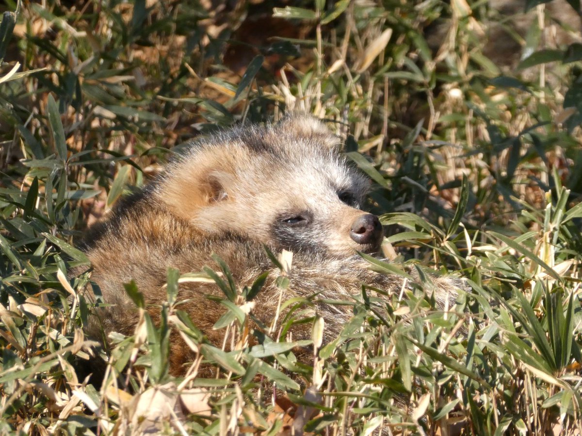 タヌキじゃなくても、こんな日はゆっくりお昼寝したいですね!(調) #休園中の動物園