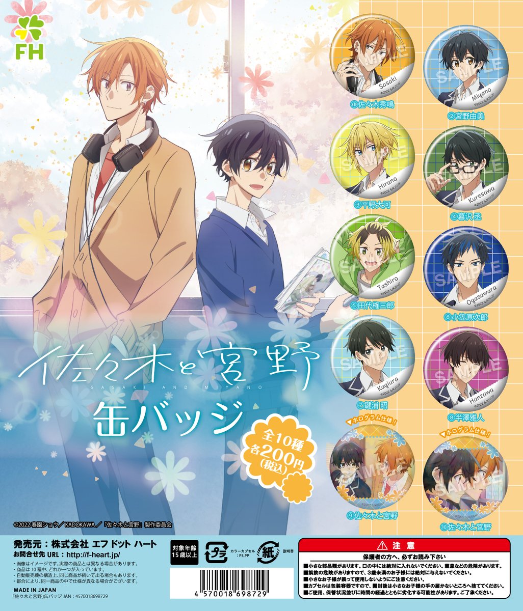 【新商品告知】好評放送中のTVアニメ『佐々木と宮野』より、44mmの缶バッジが新たに登場決定です!4月よりカプセル筐体にて順次稼働開始予定となりますので、ぜひお手に取ってください!#佐々木と宮野
