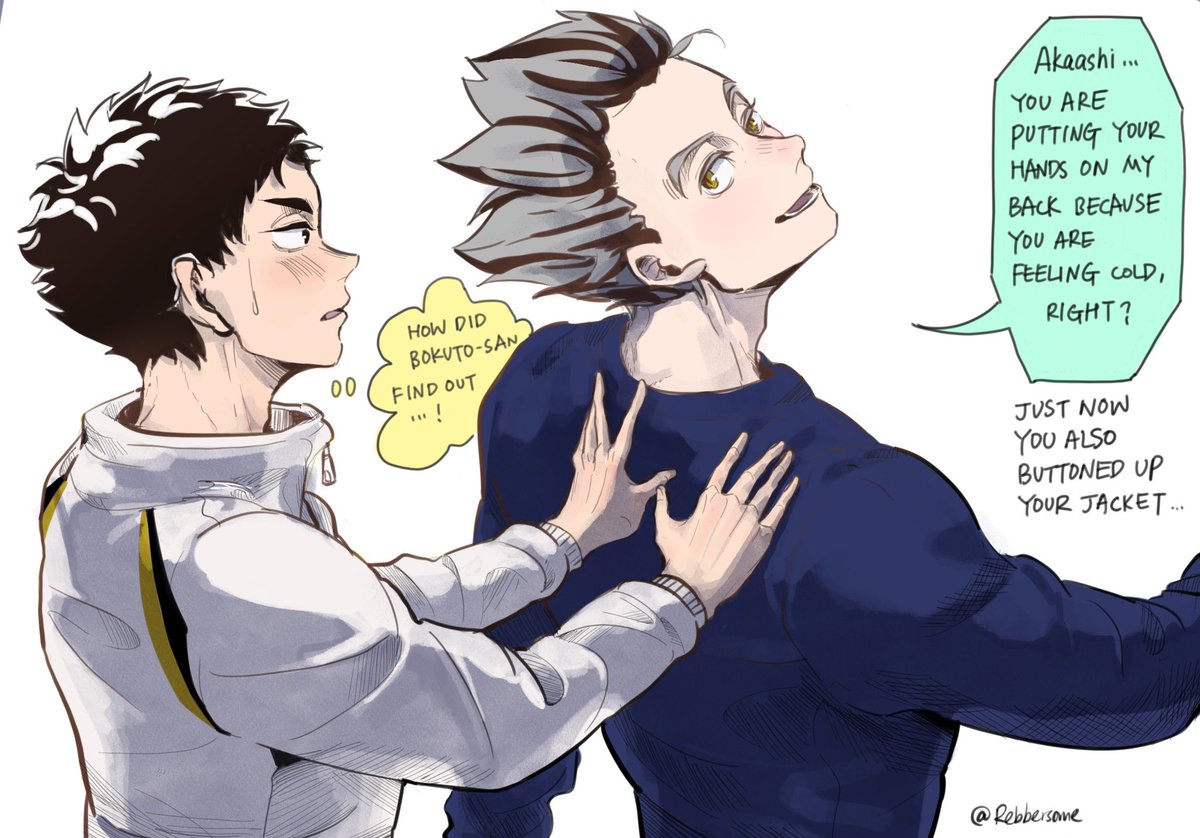 Akaashi's mirror kinks. "あかーし大丈夫? 止まった方がいい?" "...いいえ、続けてください。"