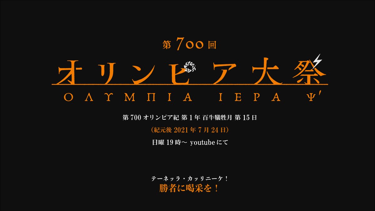 神慮めでたく。来たる2021年7月24日。古きギリシャの暦法と慣習に則り、「第700回 #古代オリンピア大祭 」を開催いたします。 土曜19時から、ステイホームでご参加あれ! #古代ギリシャナイト youtube競技会場(※無観客、無選手で行います。無料) youtu.be/V7-maPsKUvw より詳しい心構えは下記