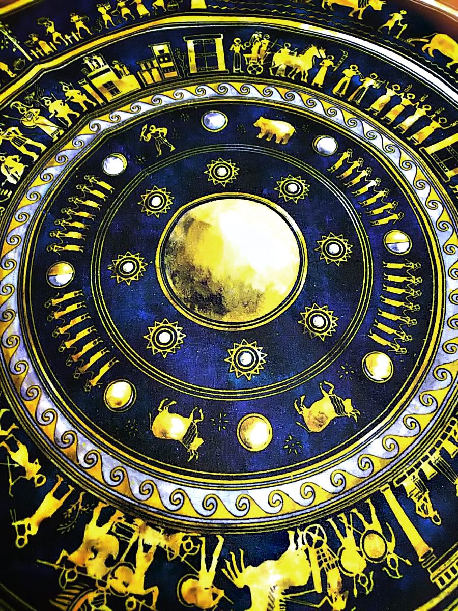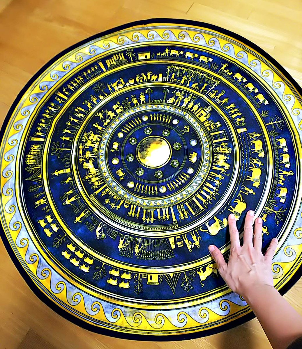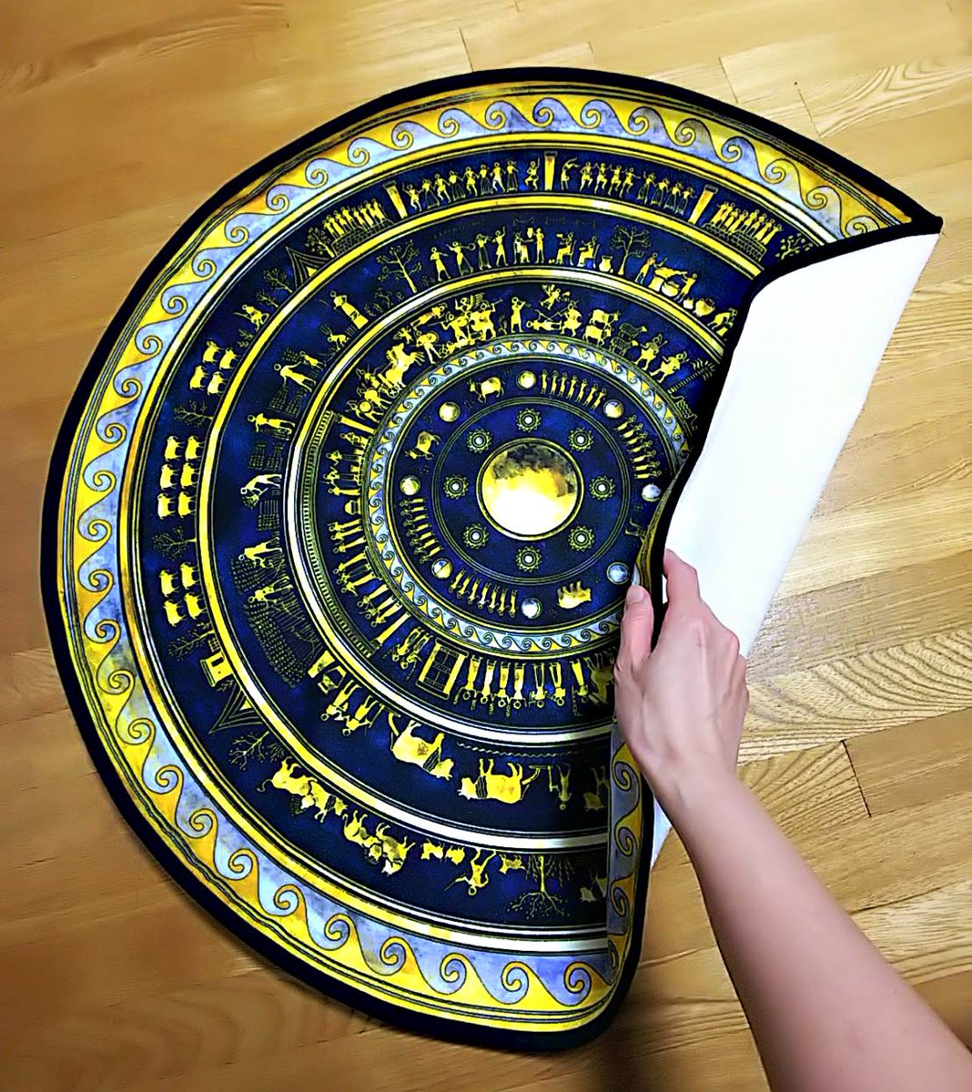 【アキレウスの盾 ラウンドタオル】【#古代ギリシャナイト 限定グッズ】 トロイア戦争を歌った古代ギリシャ最古の叙事詩『イリアス』で、その盾を語るのに139行も要する、世にも美しい英雄アキレウスの盾。 古代の盾のサイズに近い74cmのラウンドタオルとして再現しました! ancient-gr.booth.pm/items/2104816