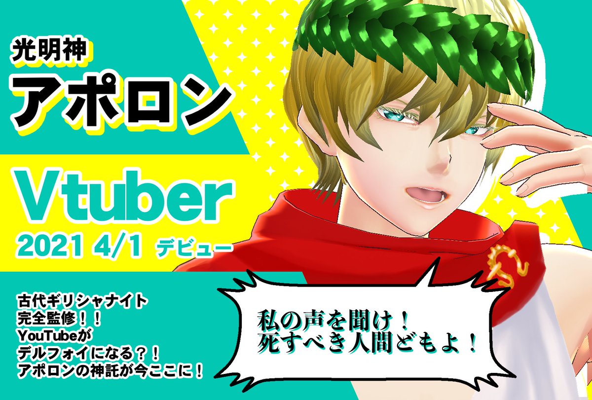 【緊急告知!】あのアポロンがYouTubeで神託を?! Vtuber『光明神アポロン』本日4/1、ついにデビュー! #古代ギリシャナイト 完全監修です! 光明神アポロン / 月桂冠Ver. by 古代ギリシャナイト公式 hub.vroid.com/characters/525… #VRoidHub