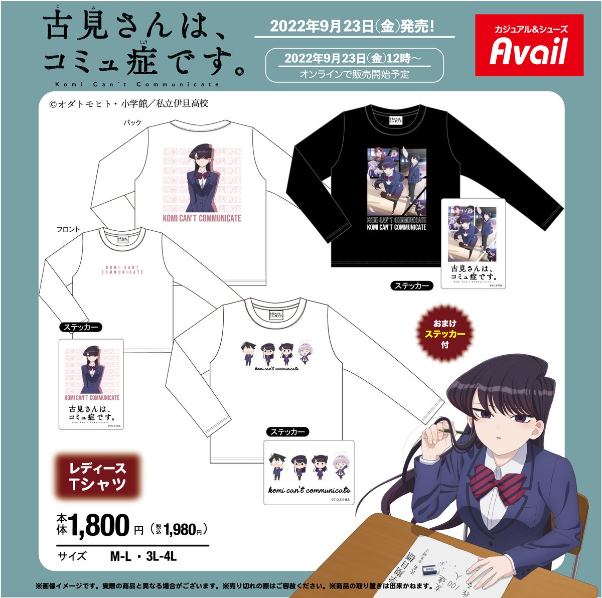 #アベイル より9/23(金)~「古見さんは、コミュ症です。」のレディースTシャツが発売!