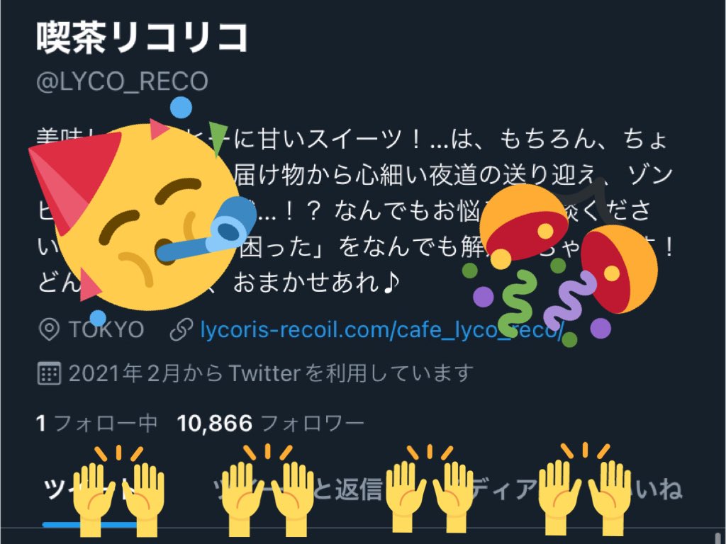 #喫茶リコリコ(@LYCO_RECO)のTwitterフォロワーが10,000人を突破しました〜😳㊗️🎉