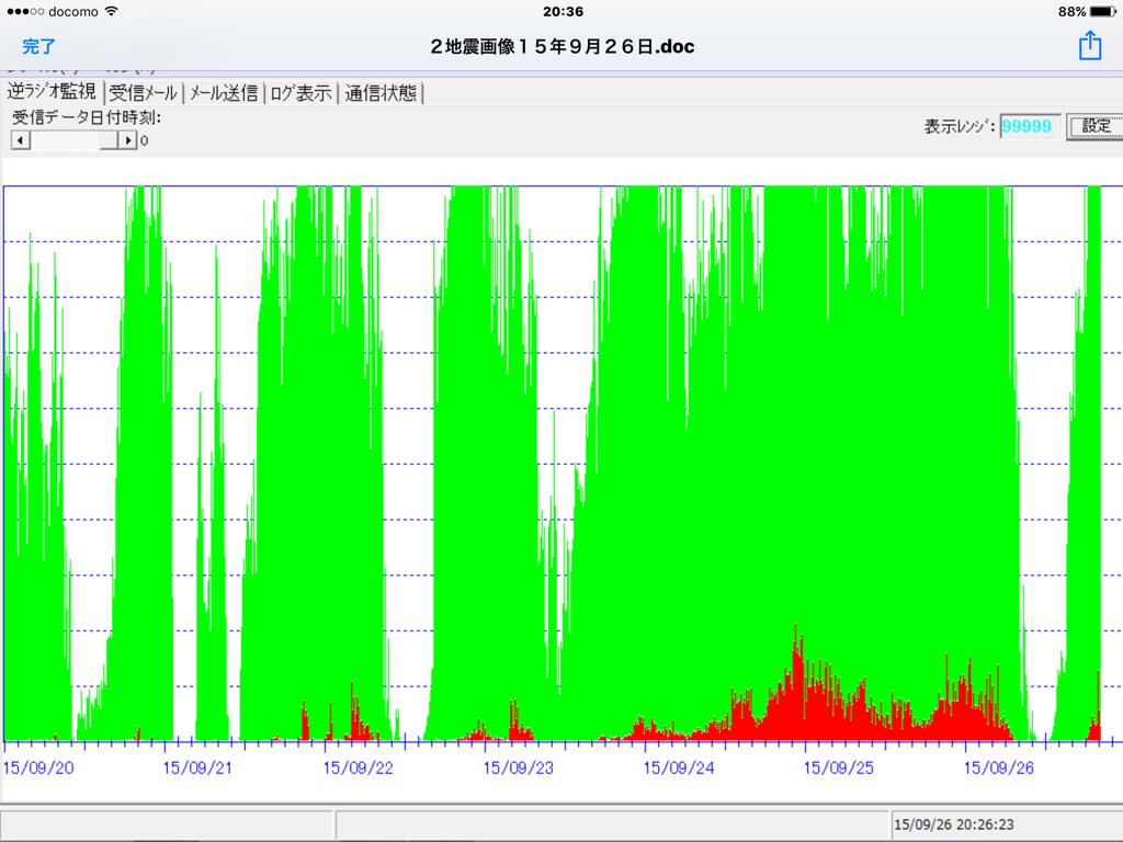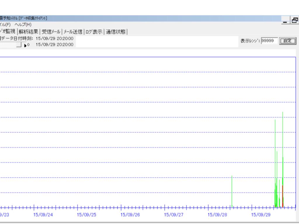 観測機2フルレンジを10倍に拡大したデータです。巨大地震の継続反応が出現しています。 収束傾向は出ていません。観測機1も殆ど反応が出現していません。9月5日±3に発生しない場合は10/5 11/3 下弦の月です #地震予知
