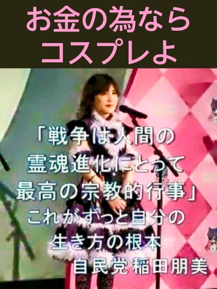 今日のゲストは、「国民の生活が大事なんて政治は間違っている」「子ども手当分を防衛費にそっくり回せば軍事費の国際水準」「戦争は人間の霊魂進化にとって最高の宗教行事」「でも自分の息子は徴兵されるのは絶対に嫌です」でおなじみの稲田朋美氏です。