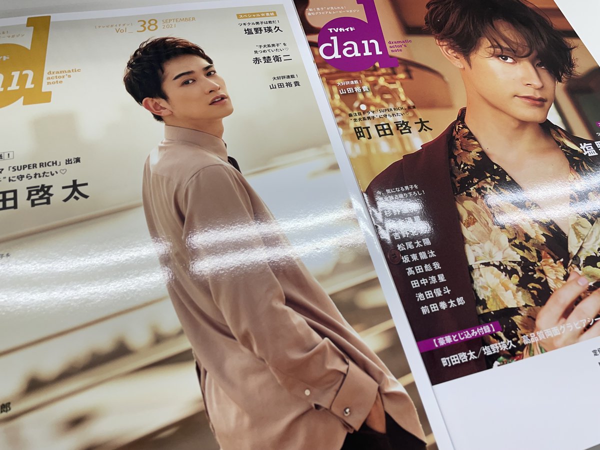 【「#TVガイドdan vol.38」9/24発売】いよいよ明後日発売!発売に先駆けて見本誌が編集部に届きました。取材にご協力いただいた皆様ありがとうございました。#町田啓太 さんが表紙、#塩野瑛久 さんが裏表紙を飾る最新号、気になる中身は随時UPするのでお楽しみに。ご予約はhonto.jp/netstore/pd-bo…