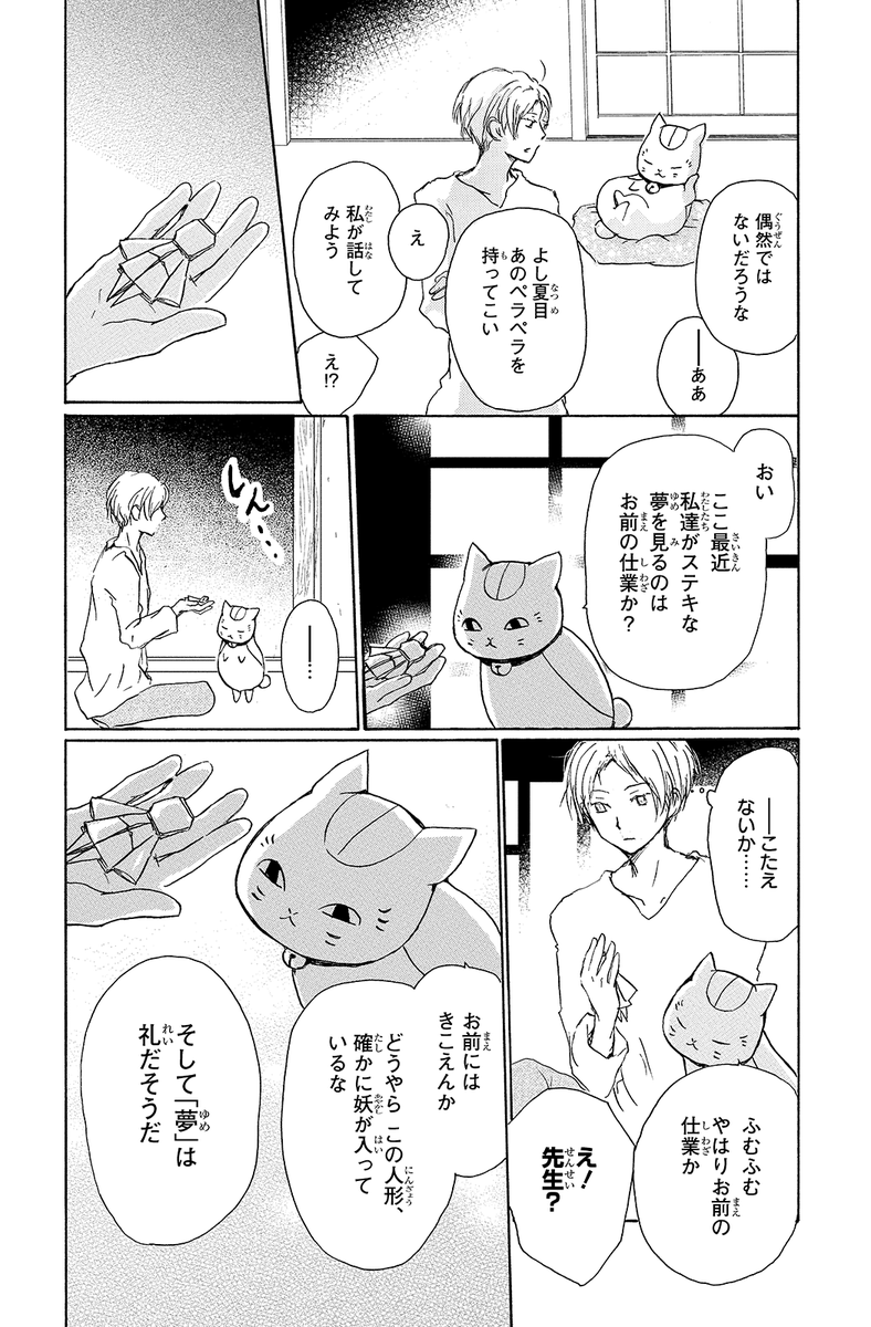 小さな頃から妖怪といわれるものの類を見ることができ、そのため周囲から疎まれてきた夏目貴志。ある日、妖から追われ逃げ込んだ神社で招き猫の姿をした妖に出会う。
