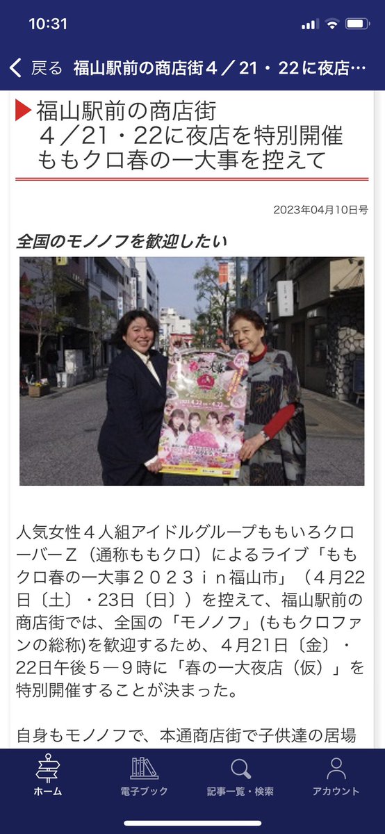福山夜店の街中に、ももクロの曲と人が賑わってなんだか感動しております🥹